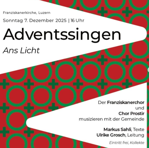Adventskonzert in Luzern Der Franziskanerchor und der ukrainische Chor Prostir laden zu einem warmherzigen Adventssingen ein.Euch erwarten ruhige ukrainische Weihnachtslieder und die schönsten Adventslieder zum gemeinsamen Mitsingen – lichtvoll, besinnlich und festlich.